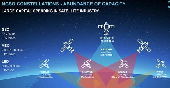 That’s a mouthful of acronyms. The idea is for you to understand that we are moving from a few large, very distant, and expensive GEO satellites to a swarm of smaller, much closer, and cheaper LEO satellites.