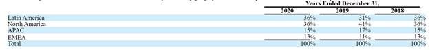 The company mostly makes money in the Americas, with the rest of the world accounting for about a third of its revenues.