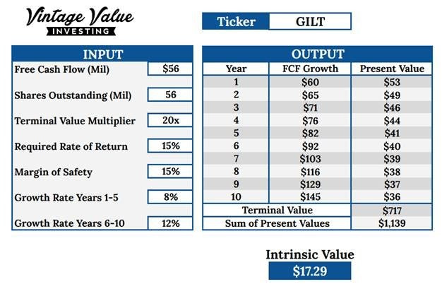 Even with these conservative assumptions, I still get a value for Gilat of almost $13, well above the current $8.23.