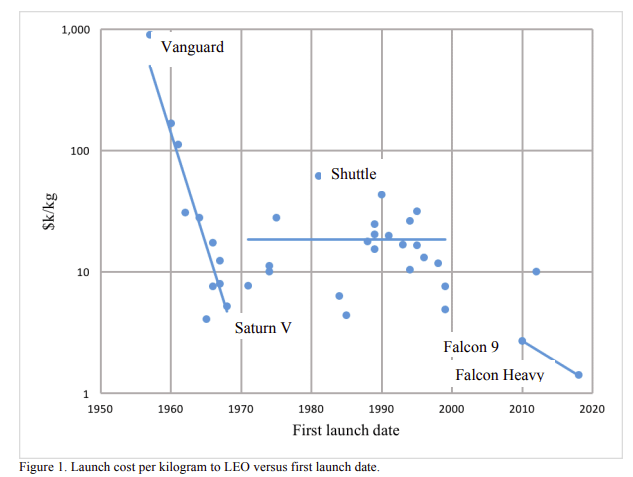 All participants are developing new launchers to reach these lofty goals. In addition to being larger, they are much cheaper as well. In just a decade, it went from $54,500 per kg to $2,720 per kg; a 20-fold decrease!