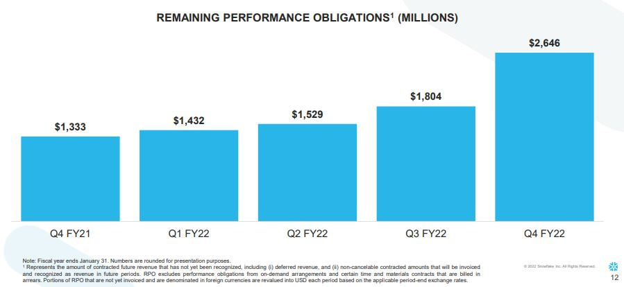 Snowflake has also seen continuous growth in Remaining Performance Obligations, which are services that have been contracted but not yet delivered.